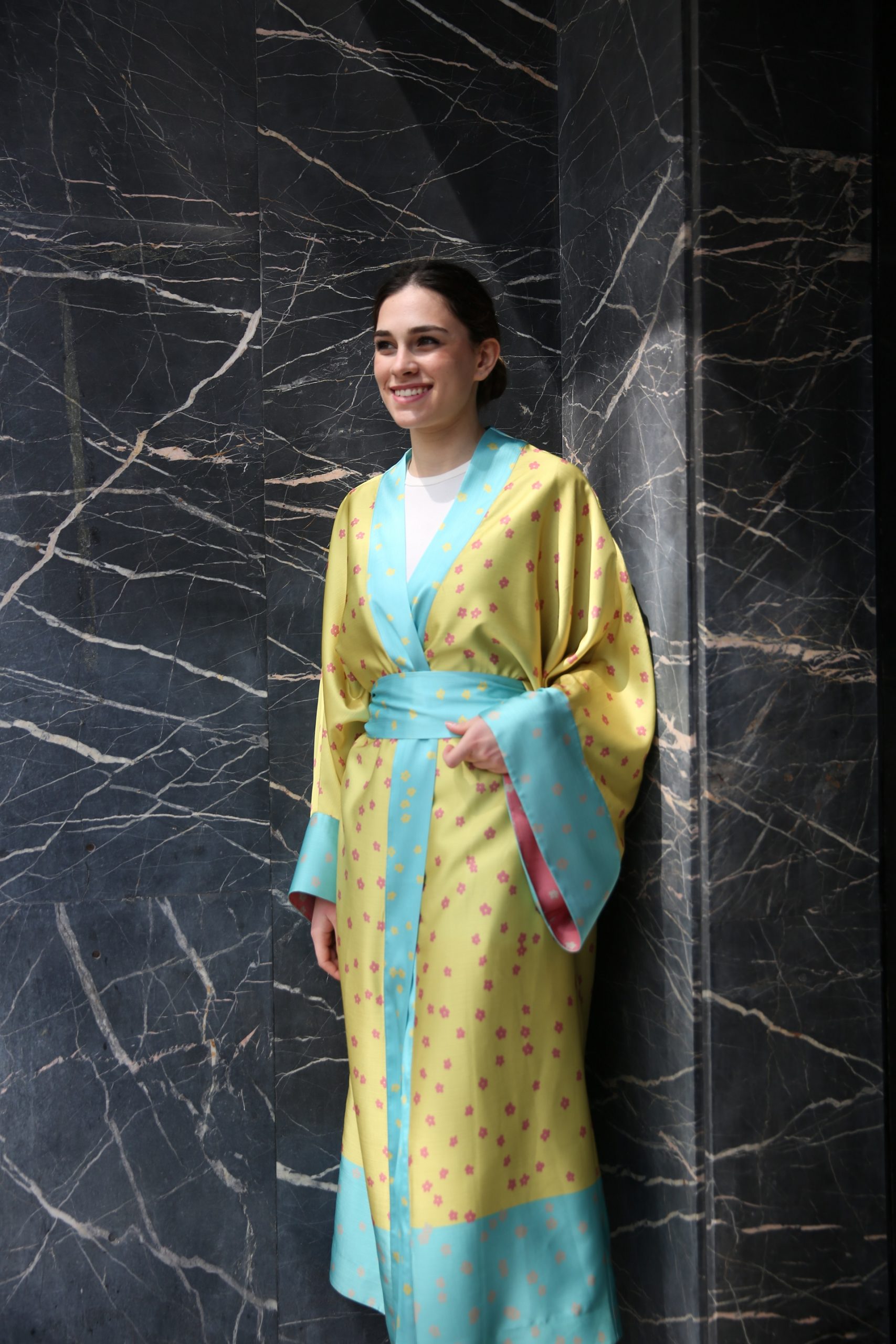 YORYO SATEN KUMAŞ. KEMERLİ VE ASTARLI CEKET.